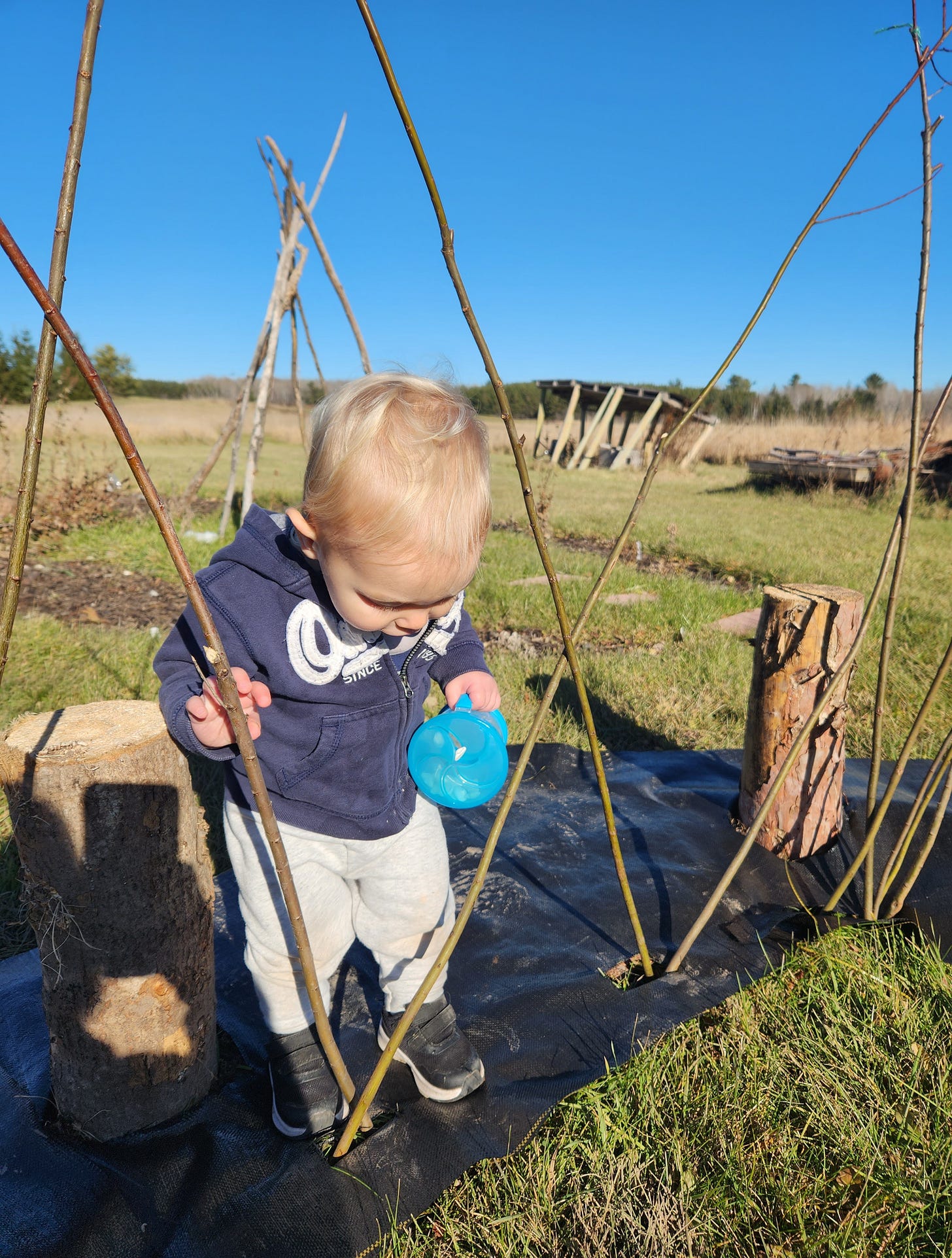 The dome awkwardly sat in our yard, just looking like a bunch of sticks poking out of the ground…which I suppose, is exactly what it is. While I wish I could have followed through with this ambitious project, having a little one, a full-time job, and working on my master’s proved to be simply too much.