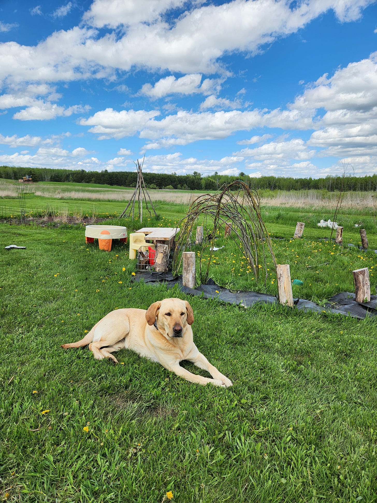 I opted for a much smaller project, a willow tunnel instead of a dome. But I love the way it turned out, even if the transformation looked a little ugly in the process. Early spring is never a pretty time in the garden.
